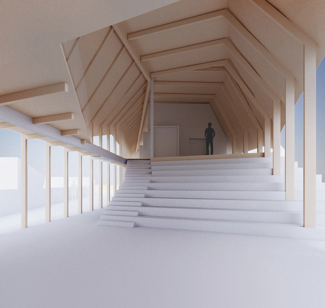 en gradin, soit un futur espace de spectacle au cœur de l’école.