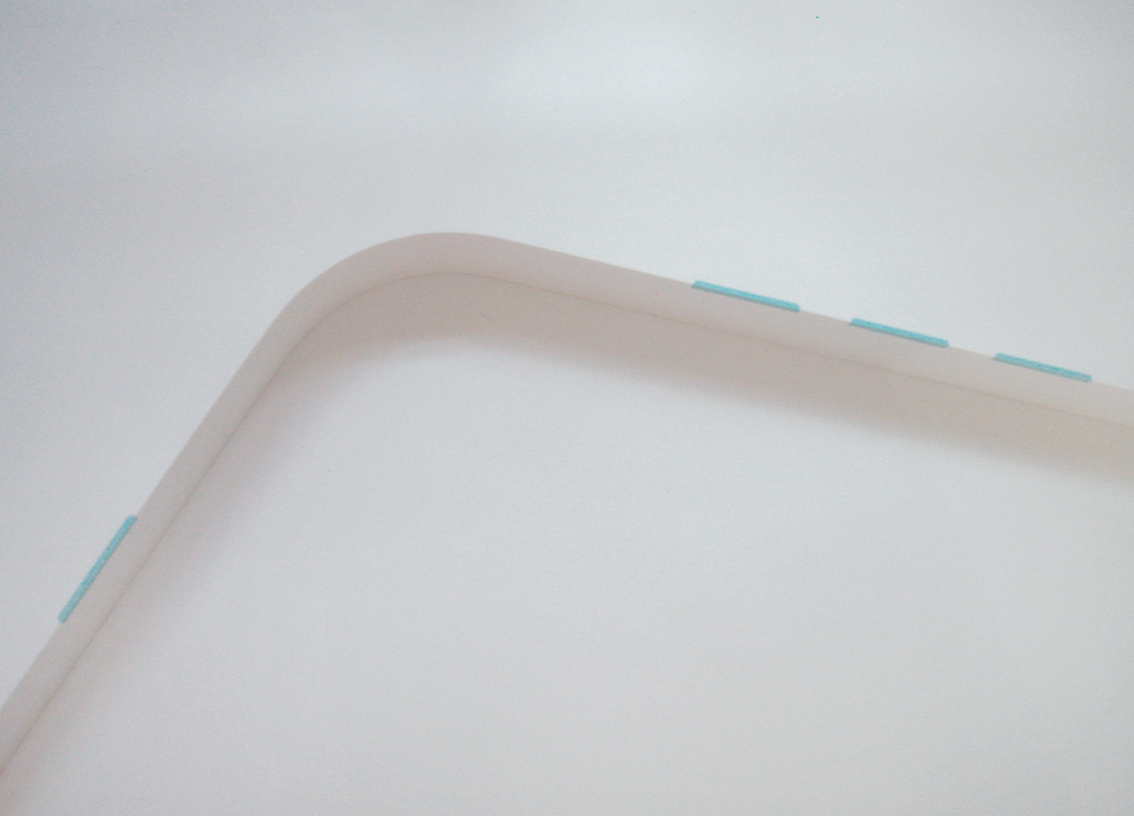 La matière Corian, mi-plastique mi-pierre, souple et hygiénique,